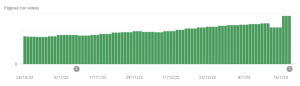 • Both the volume of pages and indexed videos went up in the days after release. The reason is that the new sitemaps gave visibility to content that was published but not indexed in search engines.